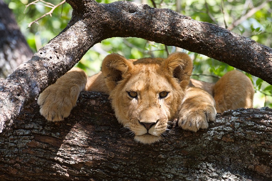Other animal species found here are elephants, buffaloes, impalas, wildebeests, hippos, giraffes and zebras. Also lions can be seen, sometimes stretching in the branches of the Acacias.